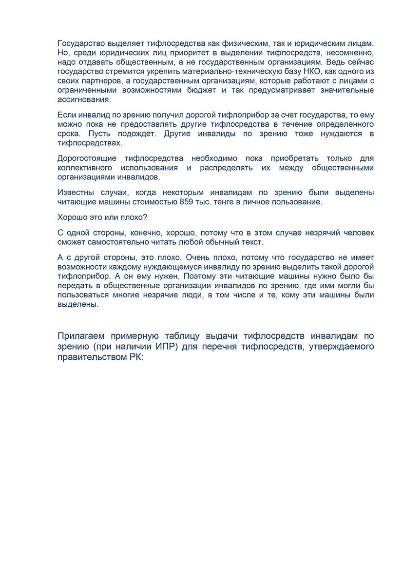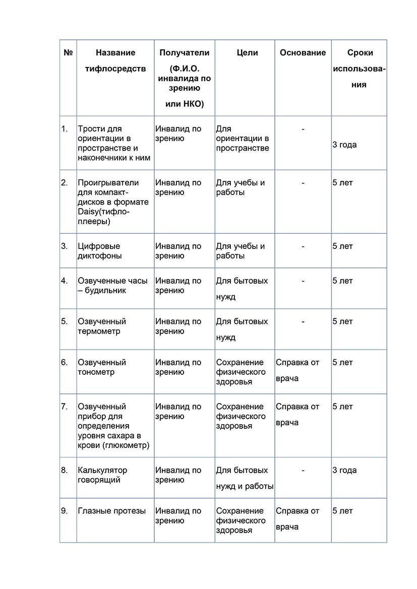 Об изменении перечня тифлосредств, предоставляемых государством инвалидам по зрению